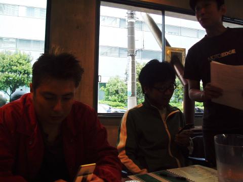 人の話も聞かずに携帯電話に夢中のせきねさんとまーちゃん。